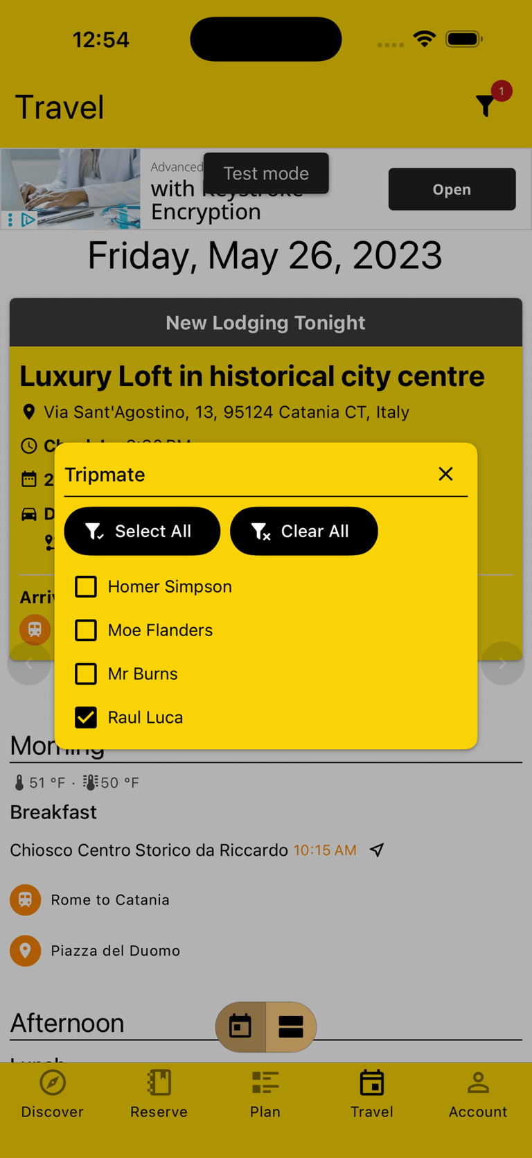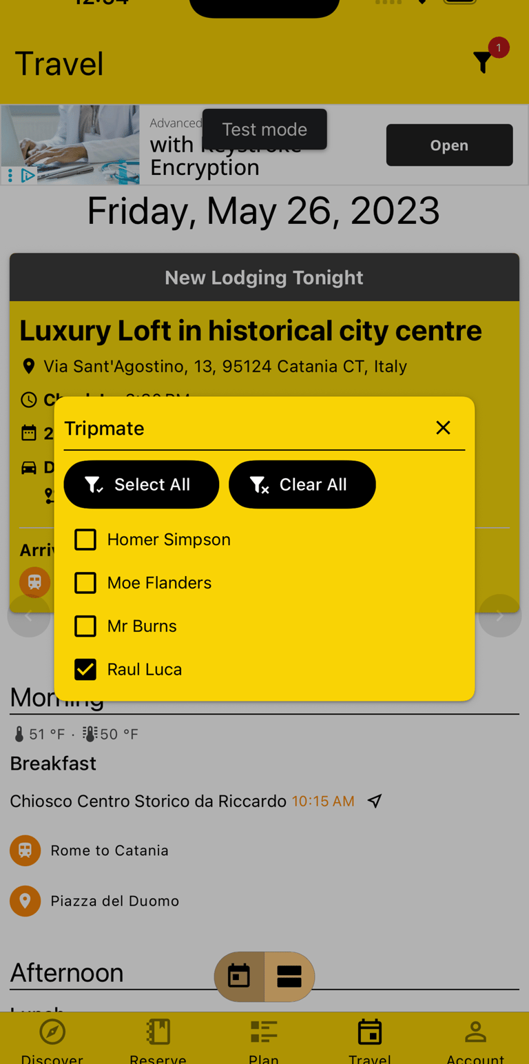 In case you're traveling in a group, you can filter the Trip by specific Tripmates, including yourself, to only see what's relevant for you.